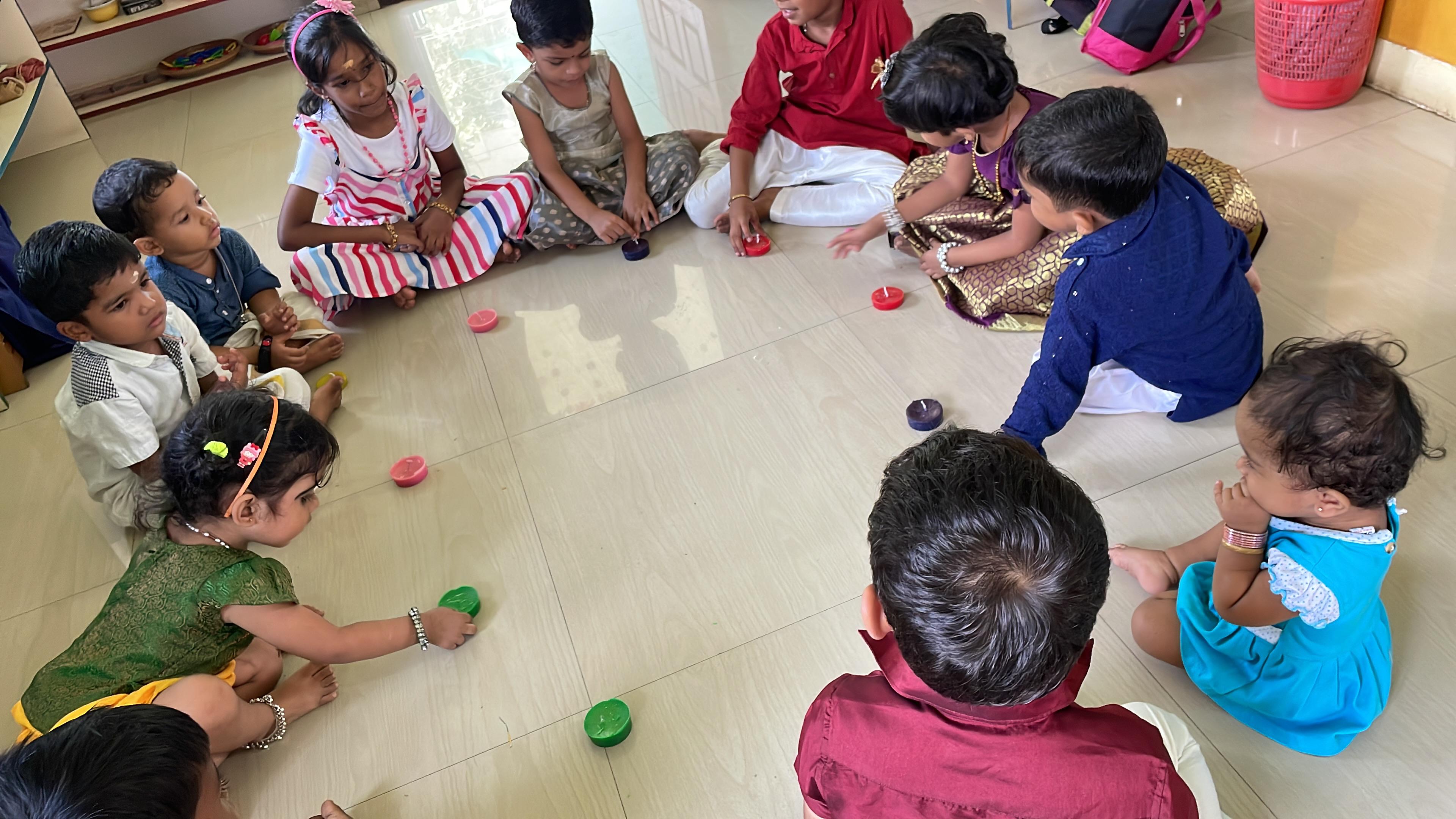 The children in Montessori environment work and learn in four areas like practical life, sensor ial. language and math. These areas have specific materials which develop the inner quality of the child and allow them to learn by themselves.